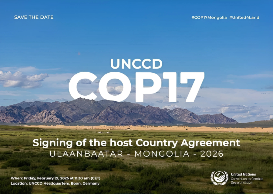 Нэгдсэн Үндэстний Байгууллагын Цөлжилттэй тэмцэх конвенцийн (UNCCD) 17 дахь удаагийн бага хурлыг 2026 оны 8 дугаар сарын 17-28-нд Монгол Улсад зохион байгуулахаар боллоо.