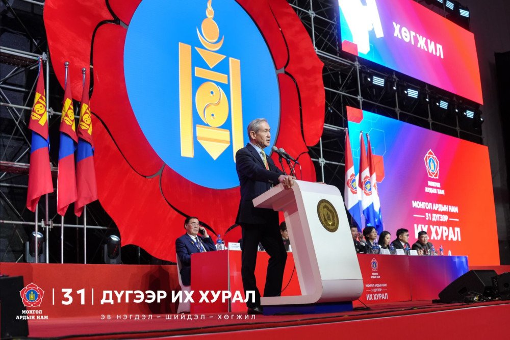 Монгол Ардын намын дарга Н.Учрал Бага хурлын гишүүдийг танилцуулснаар Монгол Ардын намын 31 дүгээр Их хурал үргэлжилж байна.