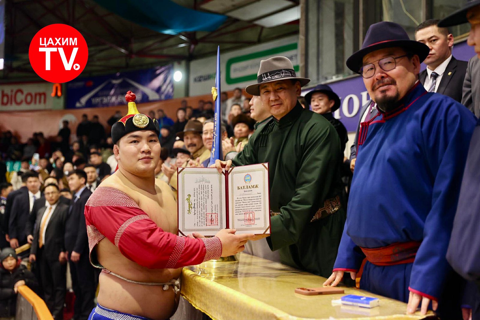 Монгол Улсын Ерөнхийлөгчийн 2024 оны 11 дүгээр сарын 02-ны өдрийн 165 дугаар зарлигийн дагуу “Монгол бахархлын өдөр”-т зориулсан барилдаанд түрүүлсэн бөхөд “Чингис хаан” цомыг гардуулж байхаар шийдвэрлэсэн юм.