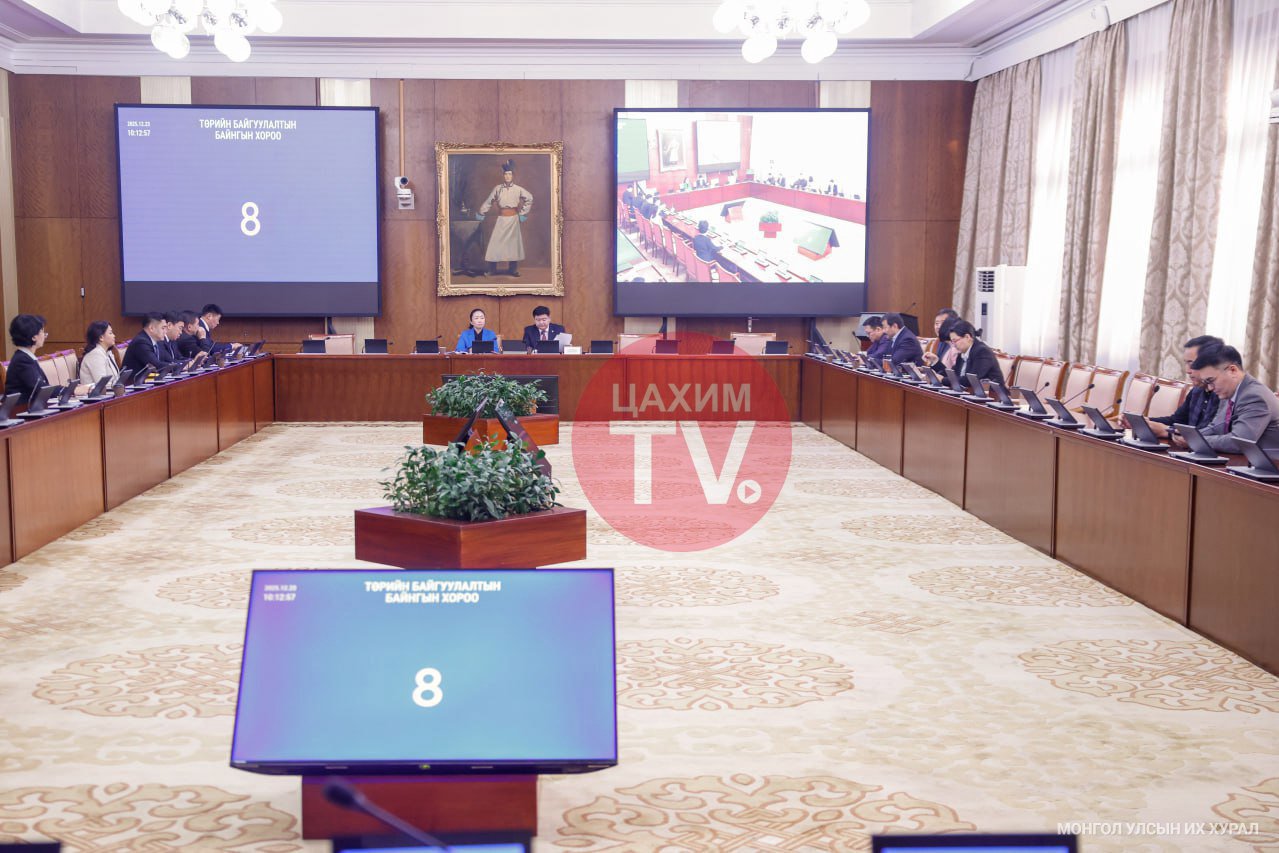 Улсын Их Хурлын Төрийн байгуулалтын байнгын хорооны өнөөдрийн /2025.12.23/ хуралдаан УИХ-ын гишүүн ААриунзаяа, Ж.Бат-Эрдэнэ, Б.Батбаатар, Ж.Батжаргал, Б.Баярбаатар, Э.Болормаа, С.Бямбацогт, А.Ганбаатар, Ц.Идэрбат, Ч.Лодойсамбуу, Ч.Номин, Б.Пүрэвдорж, Ц.Сандаг-Очир, Б.Хэрлэн, О.Цогтгэрэл, Л.Энх-Амгалан, Д.Энхтуяа нар ирснээр 53.1 хувийн ирцтэйгээр эхэллээ.