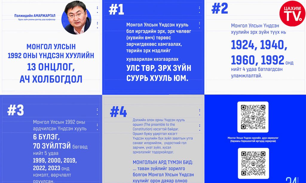 ОНЦЛОХ МЭДЭЭУЛС ТӨРМонгол Улсын 1992 оны Үндсэн хуулийн 13 онцлог, ач холбогдол01/08/202601/08/2026 Монгол Улсын ардчилсан Үндсэн хуулийн 13 онцлог, ач холбогдлын талаар Хууль зүйн ухааны доктор, дэд профессор, судлаач П.Амаржаргал онцолж байна. Улсын Их Хурлын Хэвлэл мэдээлэл, олон нийттэй харилцах газар