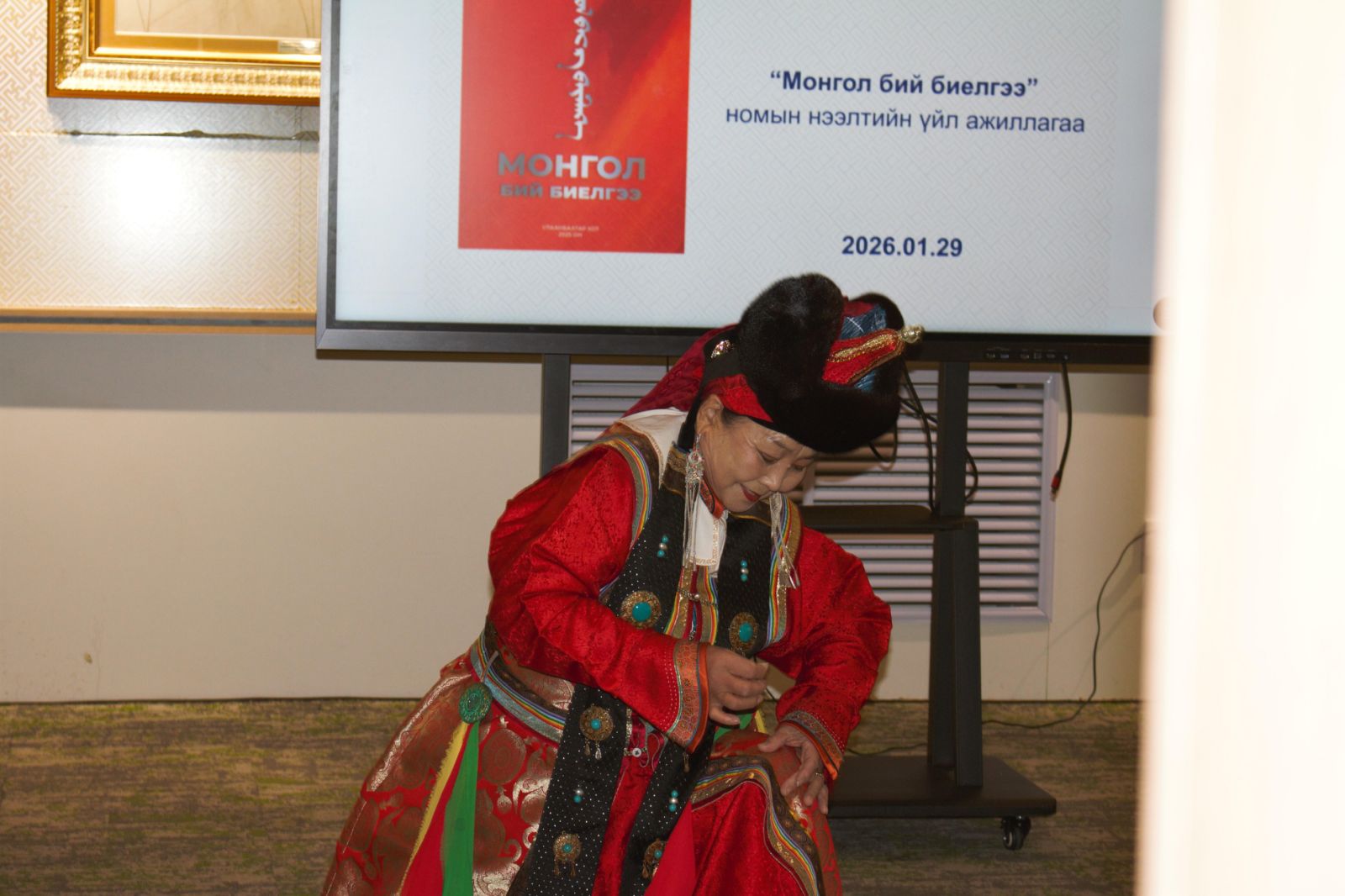 Номын нээлтийн арга хэмжээг нээж Соёл, спорт, аялал жуулчлал, залуучуудын яамны Соёлын өвийн бодлогын хэрэгжилтийг зохицуулах газрын дарга Б.Даваацэрэн, Соёл, урлагийн их сургуулийн харьяа Соёл, урлаг судлалын хүрээлэнгийн захирал, доктор (Ph.D), дэд профессор Ш.Эрдэнэцэцэг нар үг хэлж, Монгол Улсын Соёлын Гавьяат Зүтгэлтэн Соёл судлаач, доктор (Ph.D), дэд профессор С.Юндэнбат, Соёл, спорт, аялал жуулчлал, залуучуудын яамны Соёлын өвийн бодлогын хэрэгжилтийг зохицуулах газрын ахлах мэргэжилтэн Ц.Цолмон нар “Монгол бий биелгээ” бүтээлийн талаар, Монгол улсын Хөдөлмөрийн баатар, ардын багш, шинжлэх ухааны гавьяат зүтгэлтэн, доктор (Sc.D) профессор С.Дулам, Монгол Улсын Урлагийн Гавьяат Зүтгэлтэн, өвлөн уламжлагч Г.Баяртай нар бий биелгээ, соёлын биет бус өвийн талаар үг хэлэв.