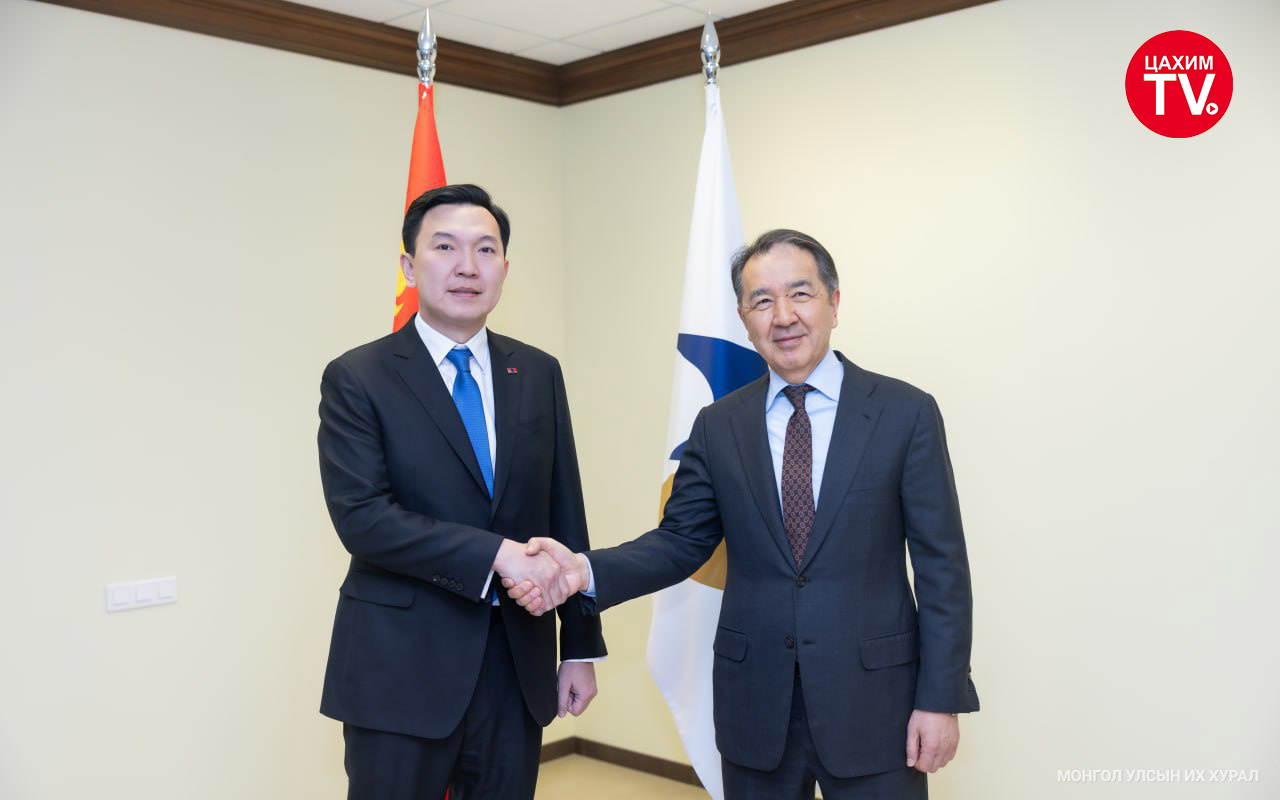Монгол Улсын Их Хурлын дарга Н.Учрал Оросын Холбооны Улсад хийж буй албан айлчлалынхаа эхний өдөр (2026.02.09) Евразийн эдийн засгийн комиссын Сайд нарын зөвлөлийн дарга Бакытжан Абдирович Сагинтаевтай уулзлаа.
