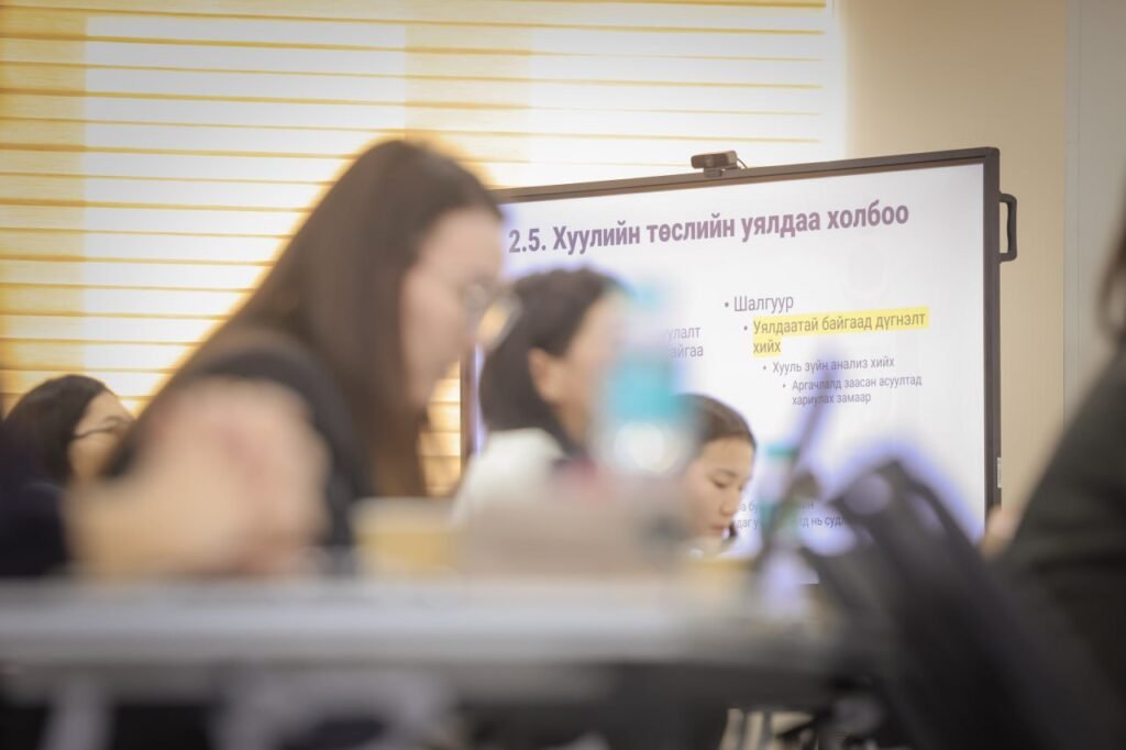“Хуулийн төсөл боловсруулагчийн сургалт” 2026 оны 02 дугаар сарын 12-ны өдөр гурав дахь өдрөө үргэлжиллээ. Сургалтад Ерөнхийлөгчийн Тамгын газар, Засгийн газрын Хэрэг эрхлэх газар, бүх яамд болон Улсын Их Хурлын харьяа байгууллагууд зэрэг 30 гаруй байгууллагын 60 орчим албан хаагч хамрагдаж байна.
