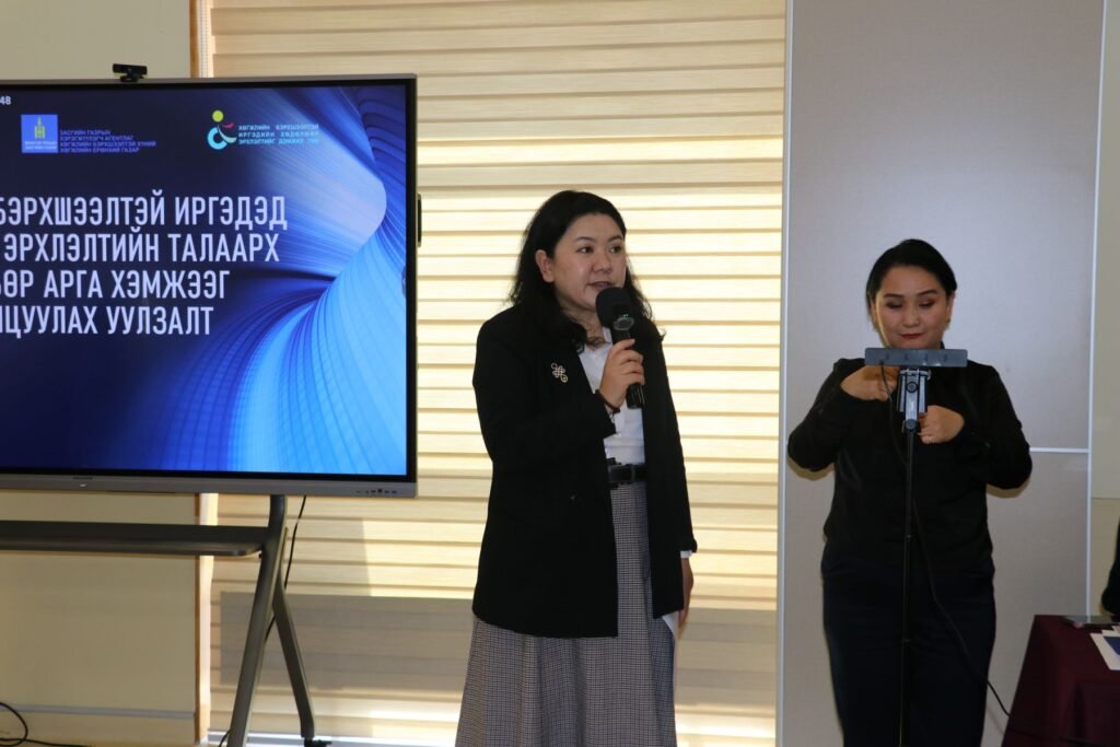 Энэ хүрээнд бид хөгжлийн бэрхшээлтэй иргэдийн хөгжих, ажил хөдөлмөр эрхлэх, тэдний үйлдвэрлэсэн бараа бүтээгдэхүүнийг борлуулах чиглэлээр олон талт арга хэмжээг зохион байгуулж, иргэд олон нийтийн ойлголт хандлагыг нэмэгдүүлэх сургалт, нөлөөллийн ажлыг тогтмол хийж байна.