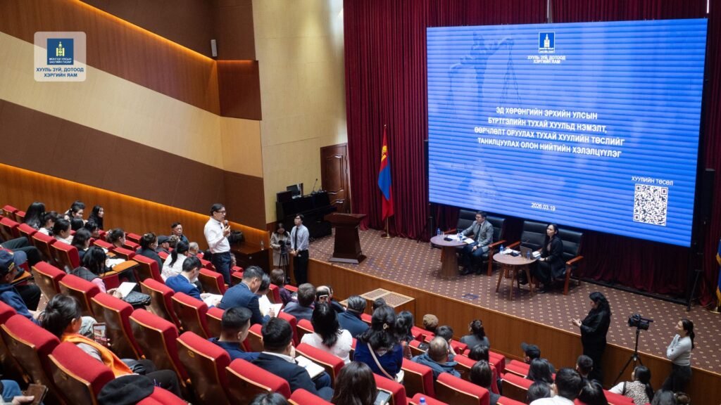Сүүлийн жилүүдэд орон сууц захиалгын залилан, луйвар эрс нэмэгдсэнтэй холбоотойгоор Хууль зүй, дотоод хэргийн яамнаас Эд хөрөнгийн эрхийн улсын бүртгэлийн тухай хуульд нэмэлт, өөрчлөлт оруулах тухай хуулийн төслийг боловсруулж, 2026.03.19-ний өдөр оролцогч талуудыг хамруулан нээлттэй хэлэлцүүлэг зохион байгууллаа.