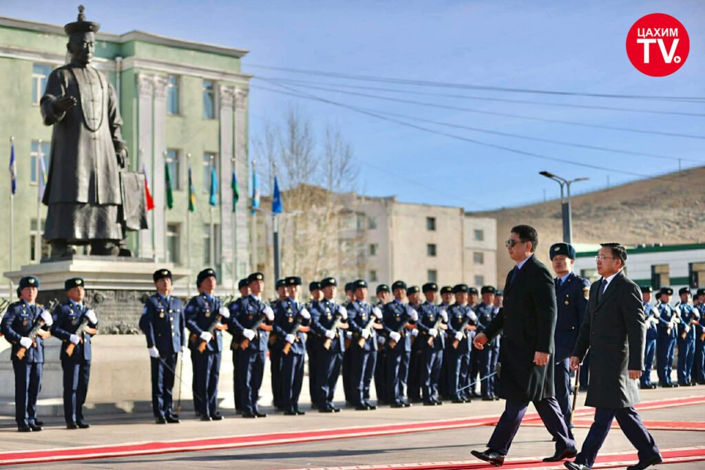 Монгол Улсын Ерөнхийлөгчийг Жалханз хутагт Ц.Дамдинбазарын нэрэмжит төв талбайд хүрэлцэн ирэхэд Улиастай цэргийн хүрээний хүндэт харуул угтаж авлаа.