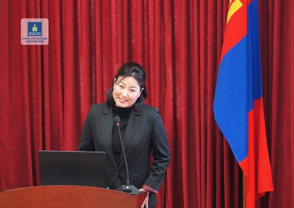 Нийгмийн шударга ёс, хүний эрхийн суурь зарчим болох Жендэрийн эрх тэгш байдлыг хангах асуудлыг хууль зүйн салбарын хэмжээнд хэлэлцэж, хэн нэгнийг хүйсийн шинж чанараар ялгаварлахгүй байх, хүн бүрд тэгш боломж олгох зарчмыг үйл ажиллагааныхаа цөм болгох зорилгын хүрээнд Хууль зүй, дотоод хэргийн салбарт шинээр томилогдон ажиллаж буй ажилтан, албан хаагчдад зориулсан “Жендэрийн эрх тэгш байдлыг хангах тухай хууль, салбарын бодлогын хэрэгжилт, жендэрийн үндсэн ойлголт” сэдэвт сургалтыг өнөөдөр (2026.03.23) зохион байгууллаа.