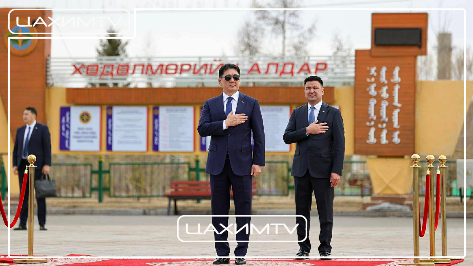 Ерөнхийлөгчийг төв талбайд аймгийн удирдлагууд, Зуунмод цэргийн хотхоны хүндэт харуул угтаж авлаа.